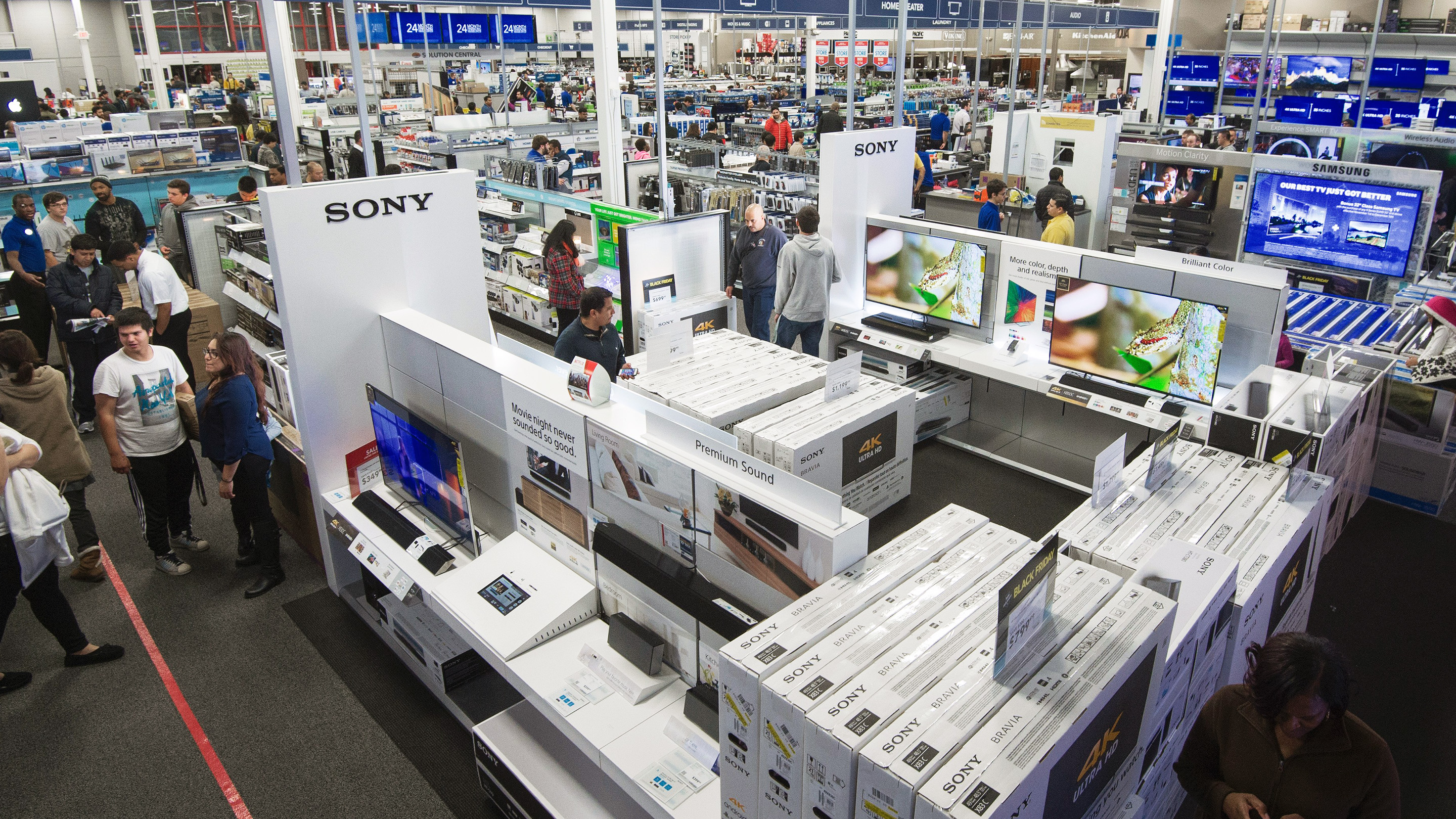 Las ventas ONLINE representan el 13,40% de la cifra total, pero la compañía tiene mucho interés en ganar cuota en su crecimiento, ya que aporta el 20,80% de los resultados. Existen diferentes modelos de tiendas y negocios, que se engloban en distintas marcas como BEST BUY, BESTBUY.COM, BEST BUY MOBILE, BEST BUY DIRECT, BEST BUY EXPRESS, GEEK SQUAD, MAGNOLIA HOME THEATER y PACIFIC KITCHEN AND HOME. La unión de todas ellas pretende aprovechar su posición en el mercado para aumentar las ventas por diferentes vías, prestando servicio a la clientela, según sus demandas. En total más de 1.600 tiendas en los 3 países, donde 1.200 de ellas son grandes superficies y 400 presentan un formato más pequeño.