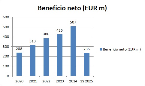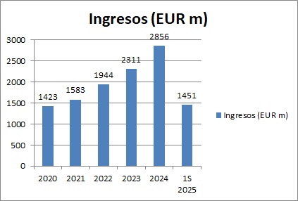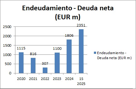 El primer semestre de 2025 reflejó un crecimiento más moderado. Los ingresos operativos fueron de 1.339 millones (+7,1 %), con un EBITDA de 542 millones (+18,4 %). América Latina y movilidad lideraron la expansión, mientras Europa mostró debilidad, en parte por la regulación italiana que limita comisiones y restará unos 60 millones de euros anuales al EBITDA. Aun así, la conversión de flujo de caja libre se mantuvo en torno al 70 %, confirmando la solidez financiera.