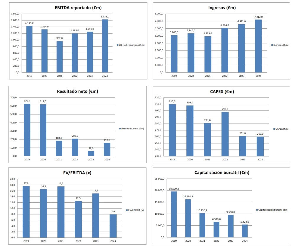 El escenario base es más modesto: deuda de 8.500 millones en 2027, ratio de 3,8 veces, márgenes del 25 % y un valor bursátil entre 13 y 15 euros por acción. La empresa se mantendría sólida pero sin brillo, presionada por activistas y con una credibilidad menor que sus rivales.