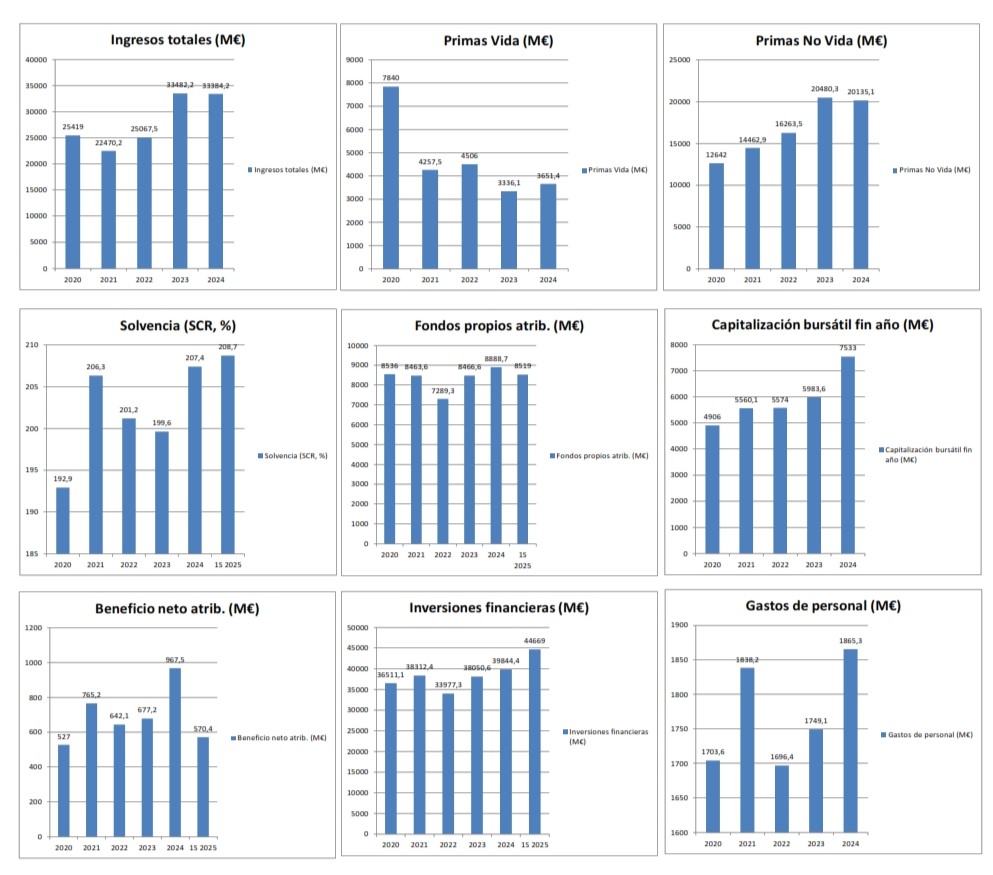 Sin embargo, también tiene puntos débiles frente a sus rivales. No cuenta con la escala global de Allianz o AXA, ni con el acceso masivo a clientes bancarios de VidaCaixa. Su presencia en Estados Unidos es limitada, lo que reduce su exposición a uno de los mercados más rentables y dinámicos del mundo. En algunos países europeos su posición es marginal, lo que impide competir de igual a igual con los gigantes del continente. Además, la fuerte competencia en Autos en España, con Mutua Madrileña y otras compañías, presiona constantemente sus márgenes.